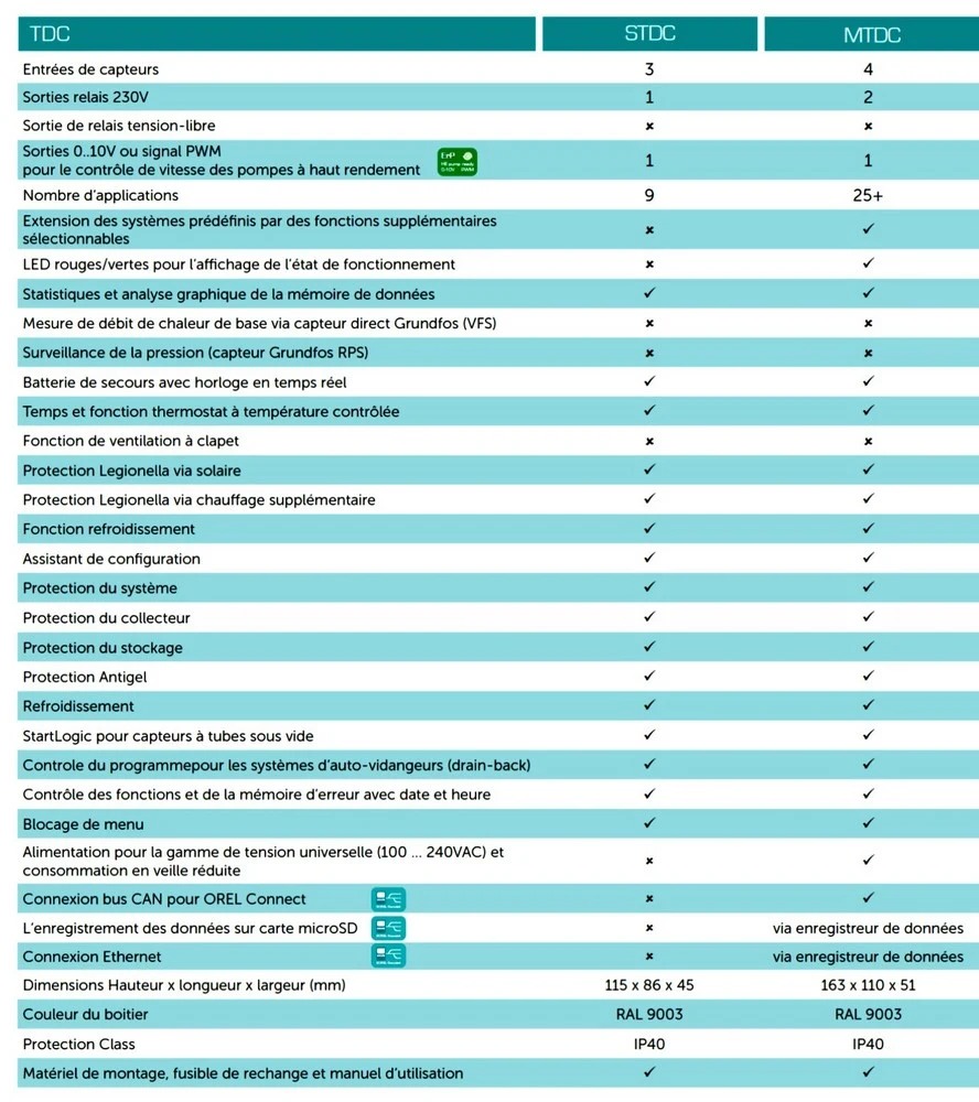 Régulation solaire caractéristiques STDC et MTDC :